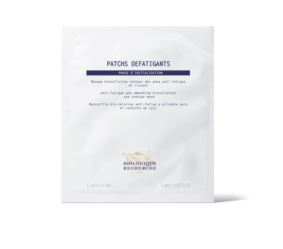Patchs Défatigants are pre-impregnated with a formula enriched with anti-puffiness, anti-dark circles and anti-wrinkle active ingredients. Its natural biocellulose support and its "pinch" shape adhere perfectly to the eye contour for a global and effective treatment. Immediately, puffiness is reduced, the skin is smoothed and fine lines are less visible for a rested look. Recommended for treating tired skin with puffiness under the eyes.