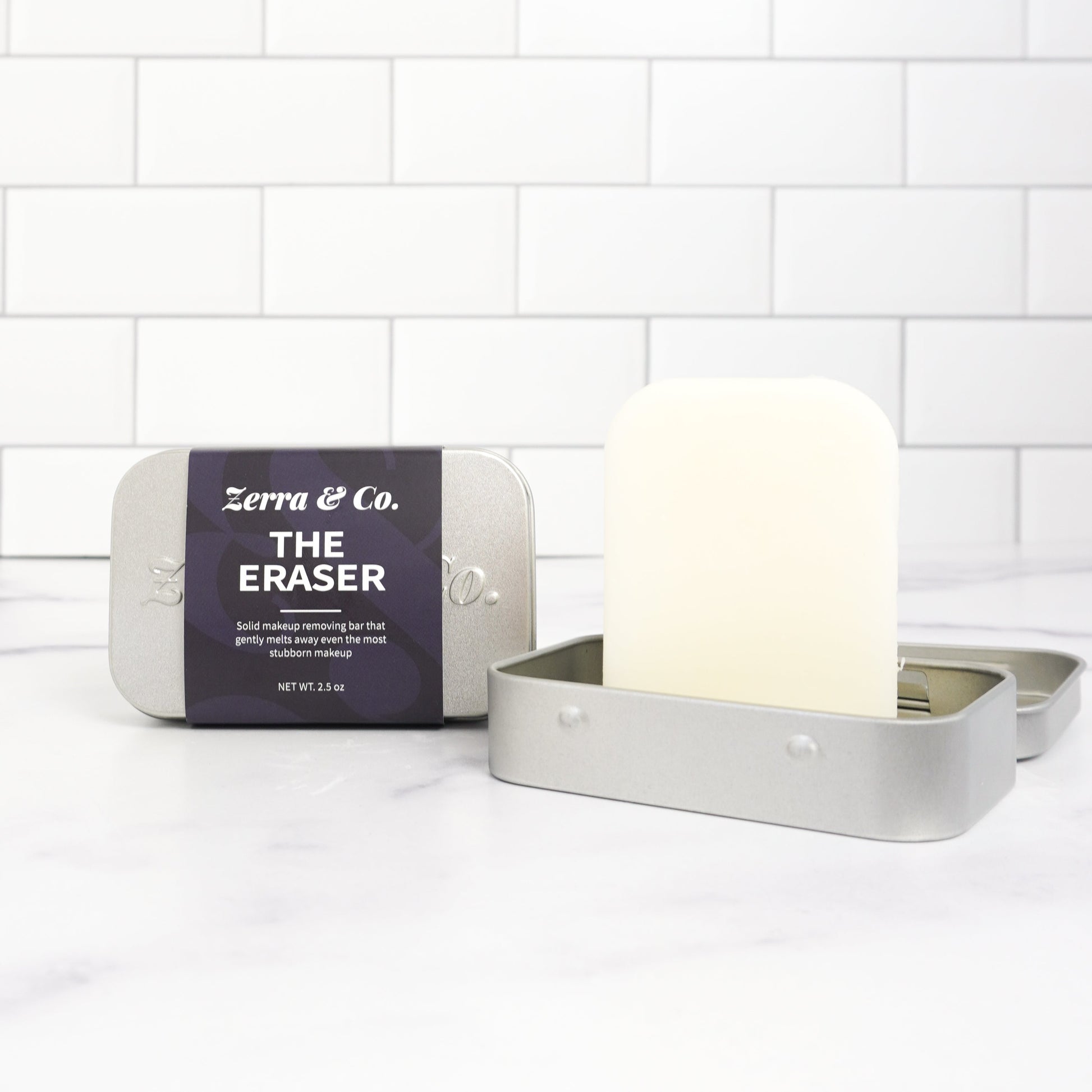 Solid makeup removing bar that gently melts away even the most stubborn makeup. Made with only 4 simple ingredients. Hydrating castor oil base breaks down makeup without irritation. Rinses off leaving skin feel squeaky clean.
